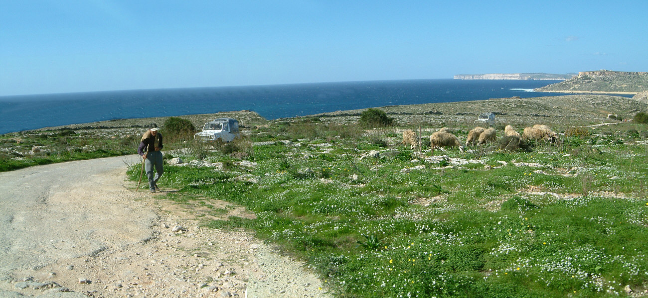an der Westküste -hinten rechts sieht man die Steilküste von Gozo- |