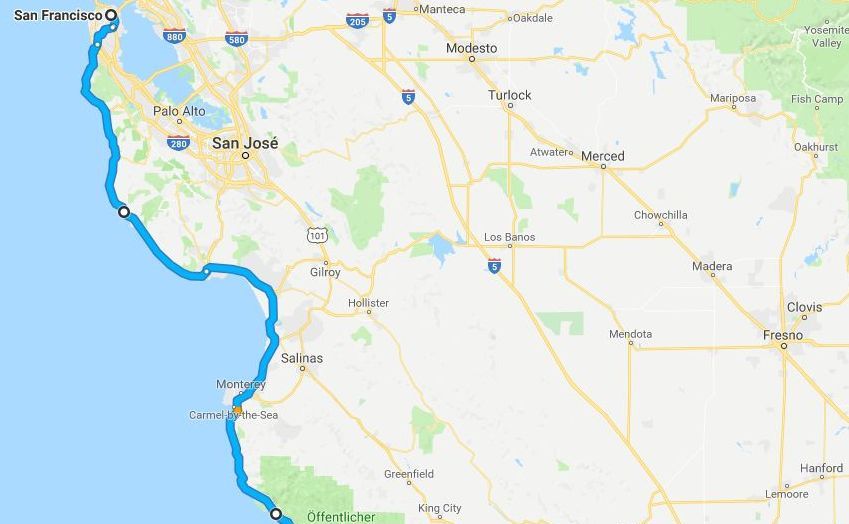 Von hieraus befahren wir dann das Sahnestück, des Highway No 1, von der Half Moon Bay über Monterey bis nach Big